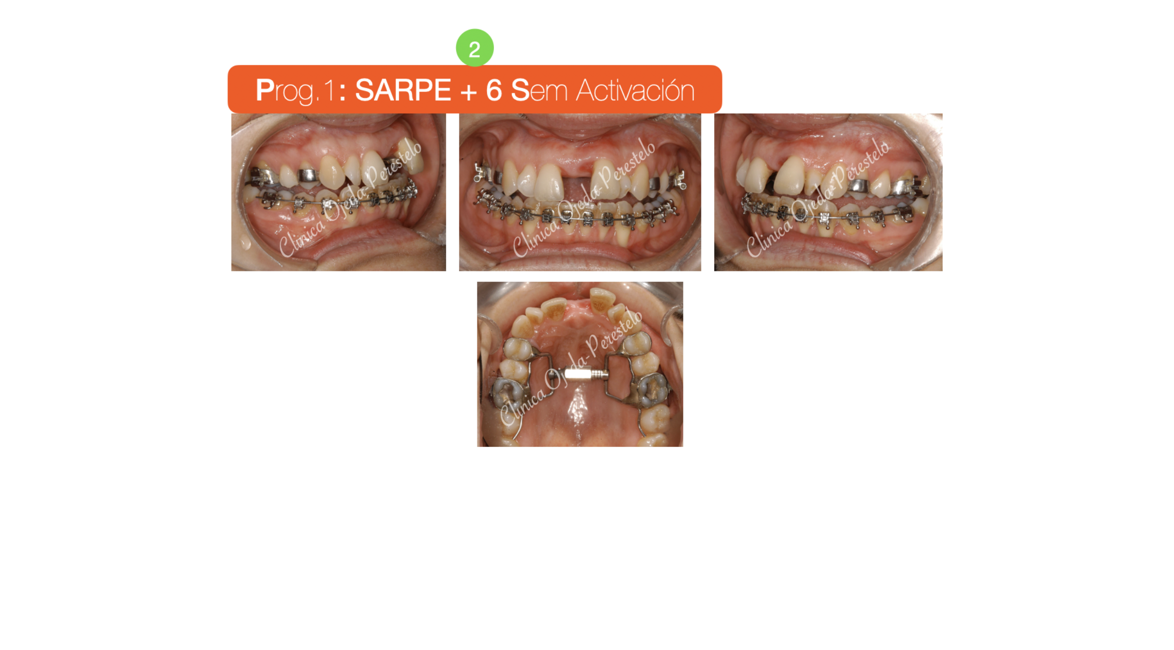 Decidimos realizar una disyunción esquelética del Maxilar asistida con Cirugía (SARPE) consistente en liberar la Sutura Palatina Media y la Pterigopalatina para que el aparato de expansión Maxilar pueda realizar la apertura del Paladar. La intervención quirúrgica ha sido realizada por el equipo del Dr Hdez-Alfaro.
