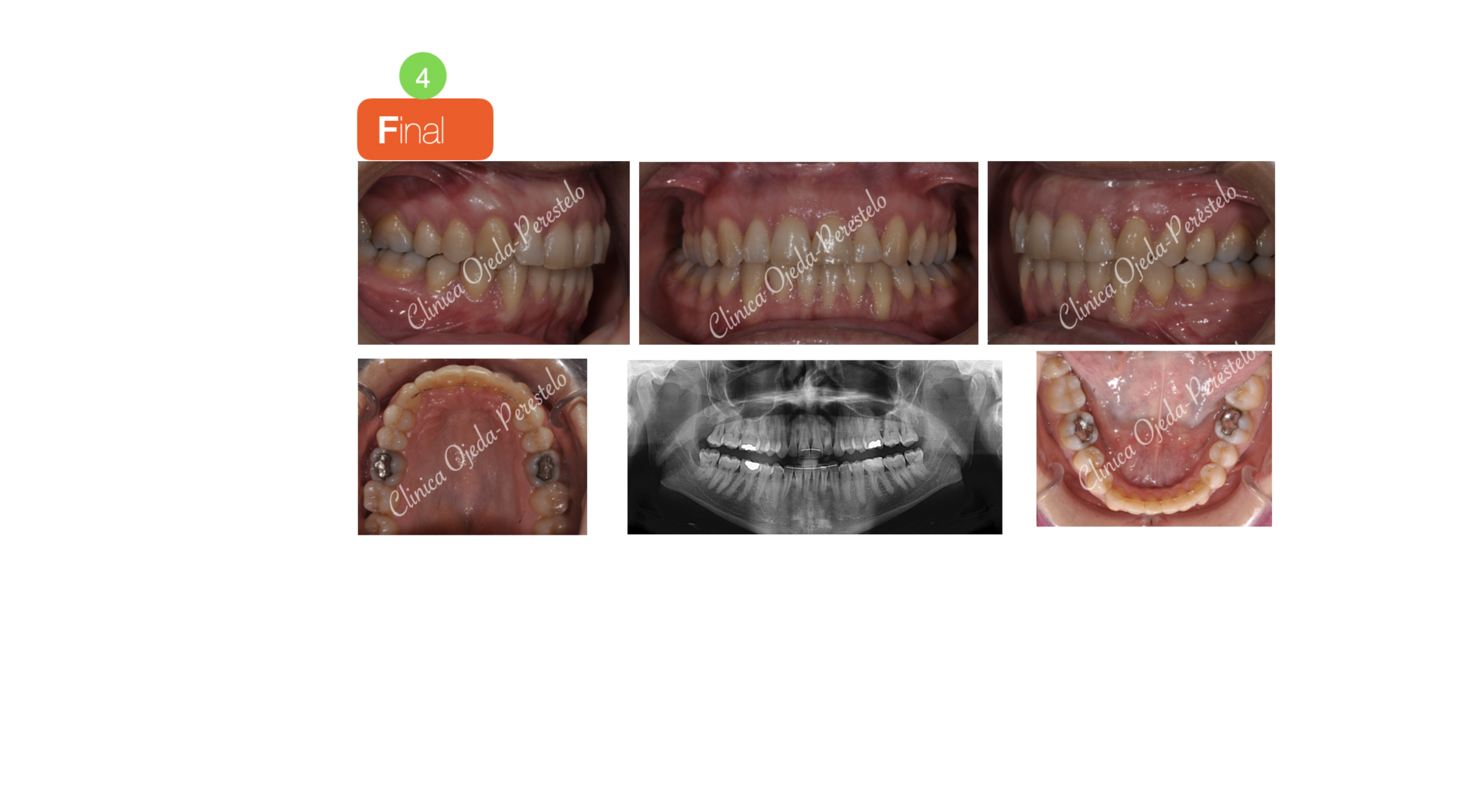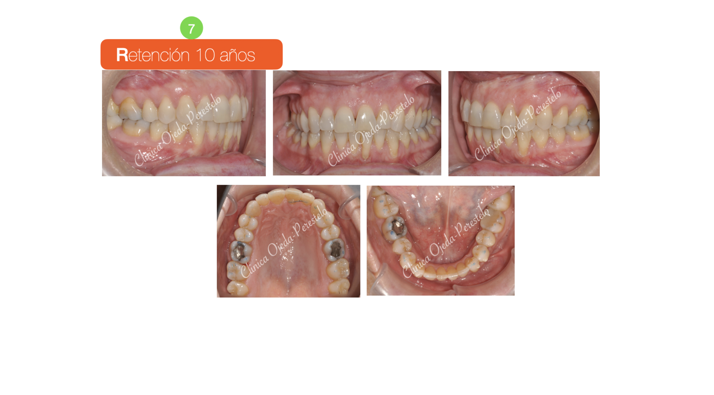 Quisiéramos destacar la mejora en la sonrisa y la función masticatoria tras finalizar el tratamiento. Presentamos la estabilidad del caso a 10 años estando la paciente pendiente de realizarse un injerto de encía a nivel del 31 y 33.