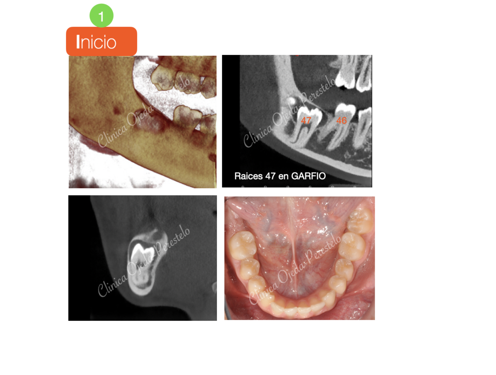 Presentamos el caso de una paciente con un 47 retenido a nivel del borde mandibular con las raíces severamente dilaceradas y preocupada porque su cirujano le ha comentado que en caso de realizarle la extracción, su mandíbula tiene probabilidades de fracturarse. Nuestro Objetivo es ubicar la pieza 47 en contacto con el 46 y llevarla hasta su plano de oclusión.
