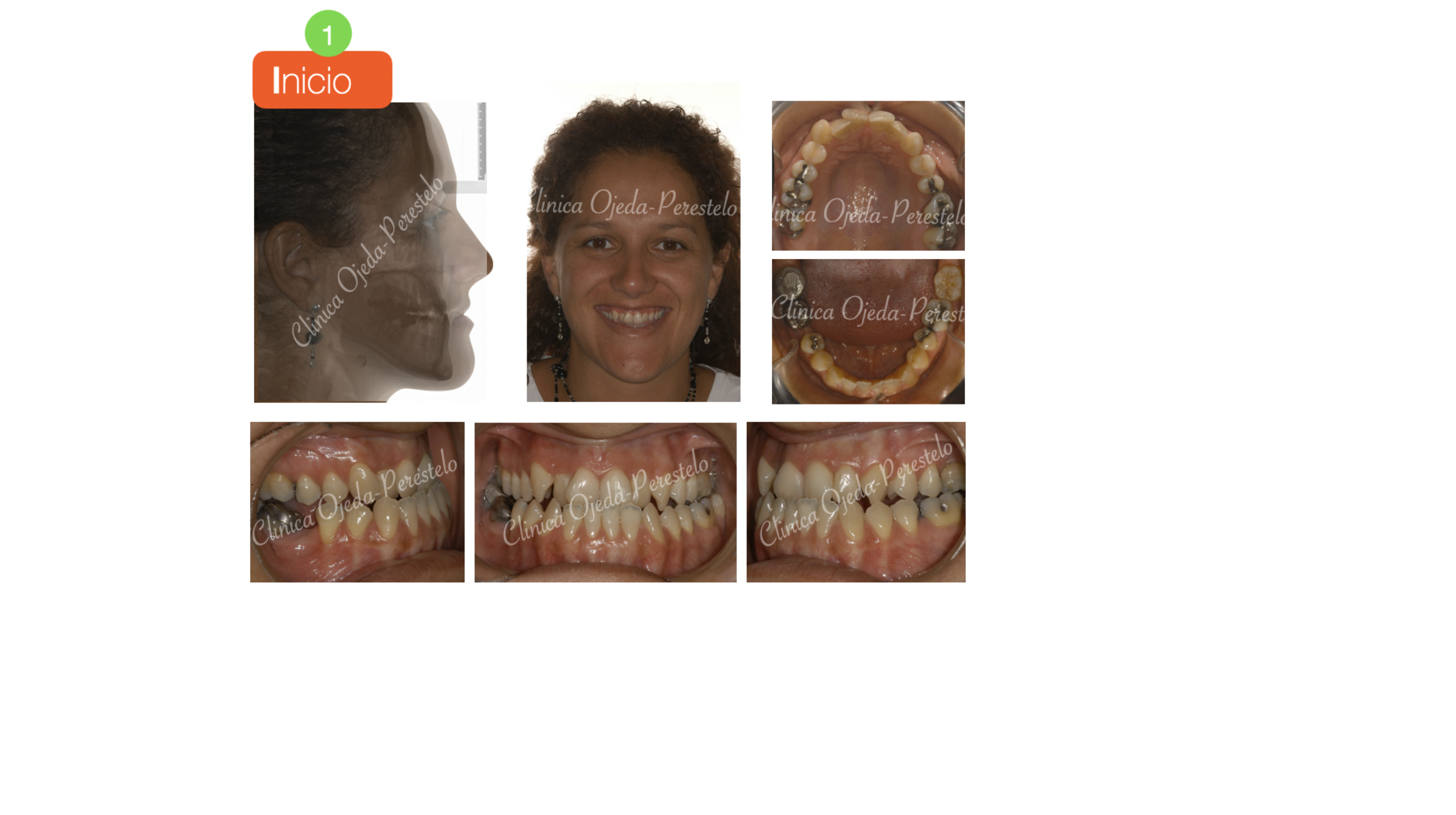 La paciente quiere cambios faciales y decidimos realizar una primera fase de Ortodoncia prequirúrgica consistente en centrar los incisivos sobre su base ósea y cerrar el espacio de la extracción. (Sistema Damon)