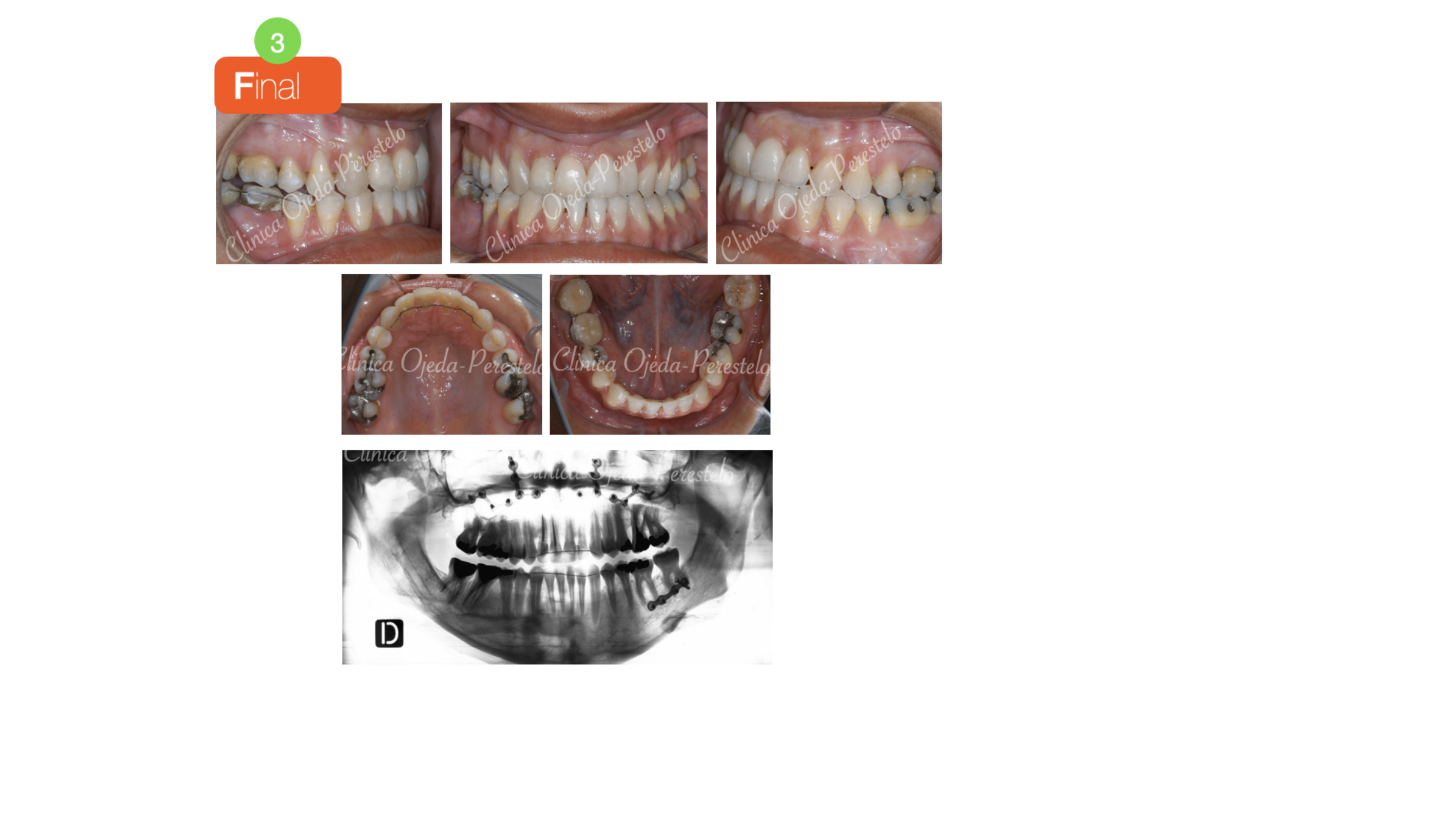 La intervención quirúrgica ha sido realizada por el equipo del Dr Hdez-Alfaro y se planificó con Lefort y Avance del Maxilar conjuntamente con Osteotomia Sagital de Rama para centrado y retrusión Mandibular unilateral hacia la izquierda. Quisiéramos destacar la mejoría en el perfil, su sonrisa y en su articulación dentaria tras finalizar el tratamiento. Presentamos la estabilidad del caso 20 años después.