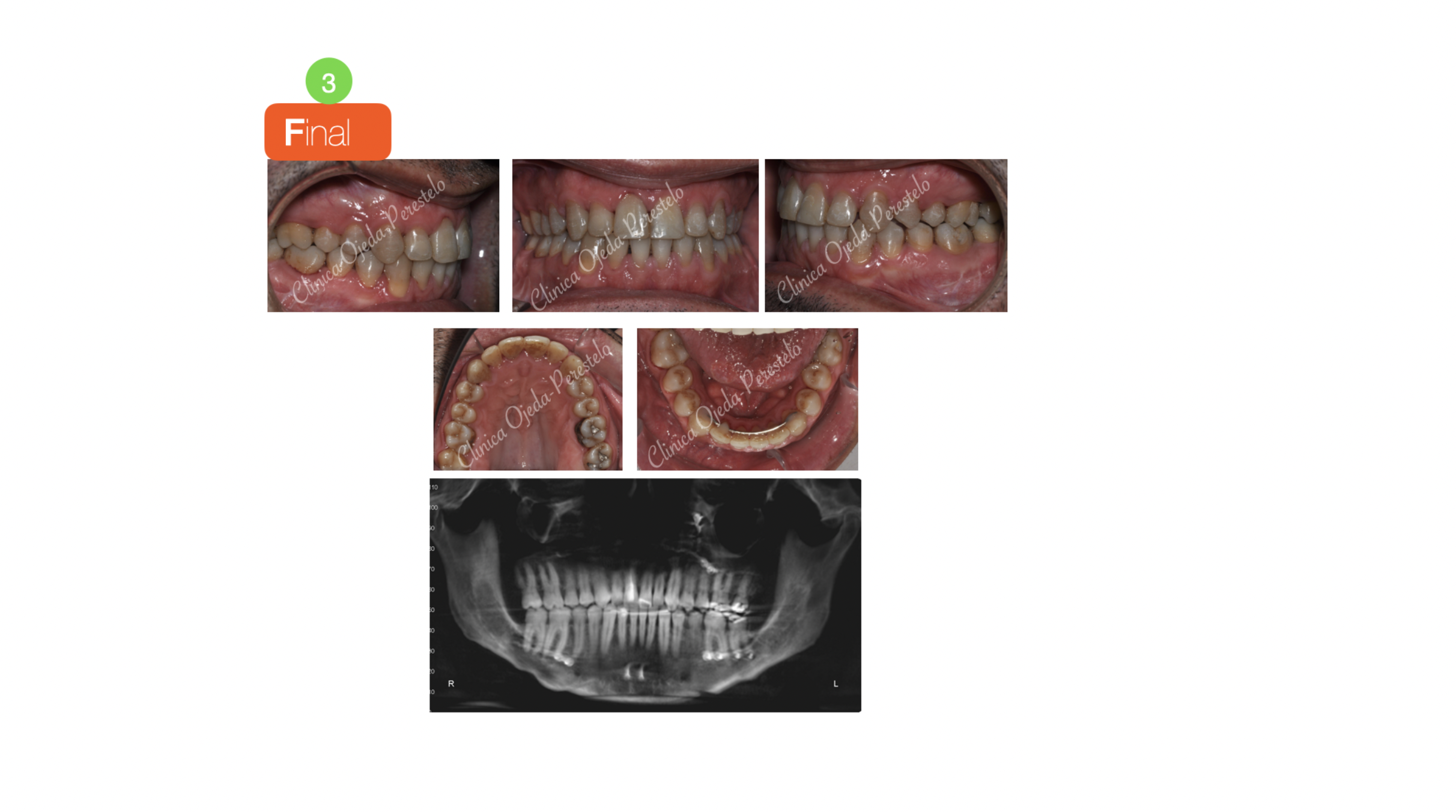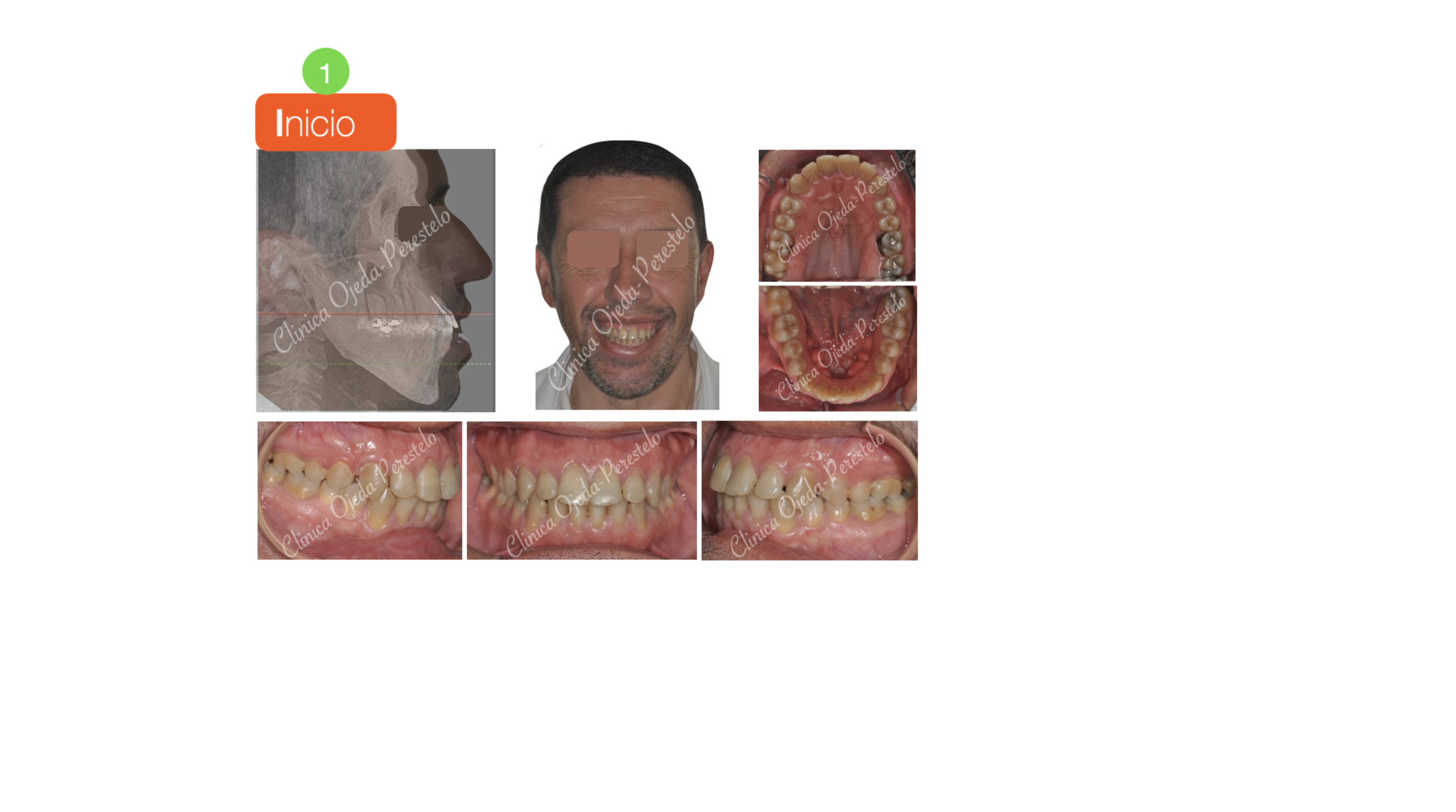Paciente que consulta porque no le gusta su muy prominente sonrisa que le dificulta mantener la boca cerrada. El paciente quiere mejorar su aspecto facial así como el exceso de encías al sonreír (sonrisa gingival). Presenta un ordenamiento natural de sus piezas que nos permite comenzar con la intervención de Cirugía Ortognática desde un primer momento (Surgery First).