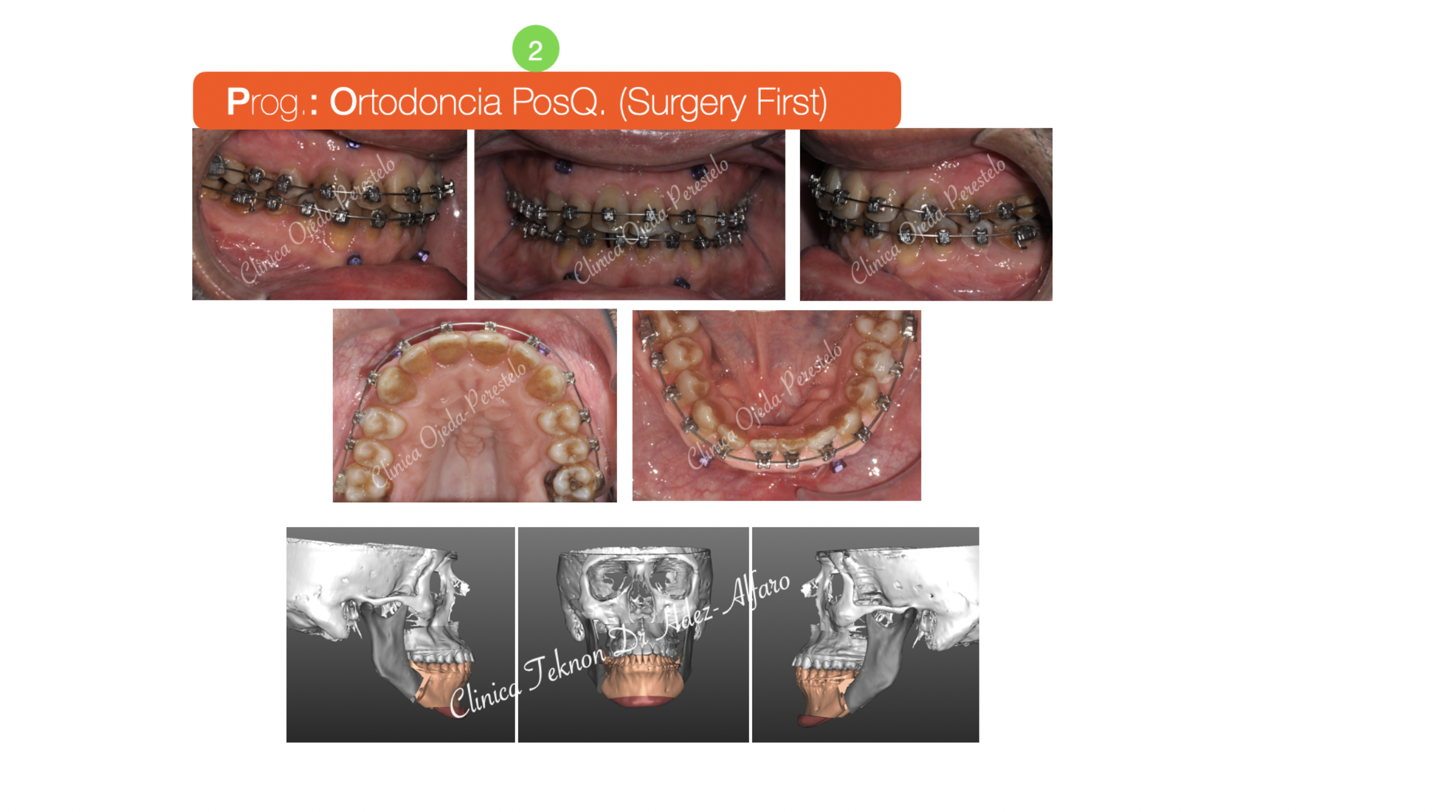 La intervención es realizada por el equipo del Dr Hdez-Alfaro y fue planificada con Lefort para Impactación y Retrusión del Maxilar conjuntamente con Osteotomia Sagital de Rama para centrado y retrusión Mandibular con Mentoplastia. Quisiera destacar la eliminación de la sonrisa gingival y la mejoría en la armonía facial y la permeabilidad de la vía Aérea.