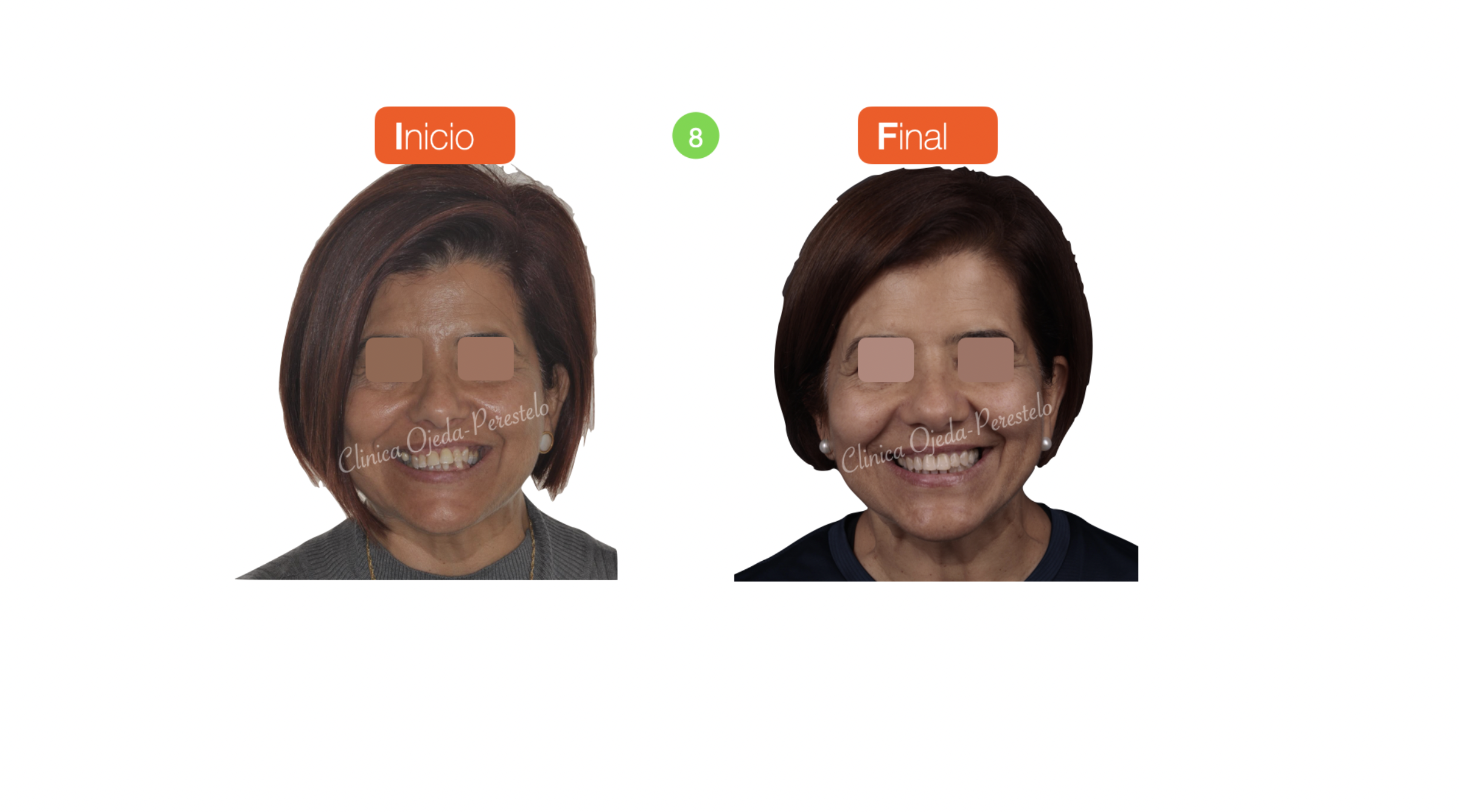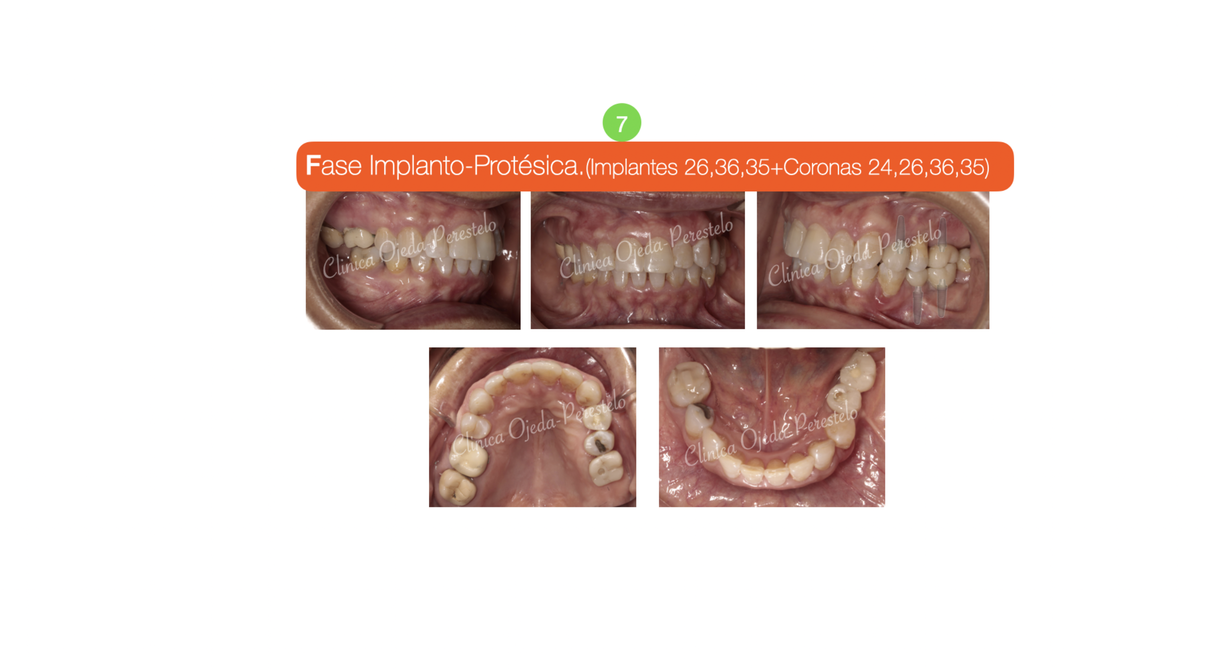 Una vez finalizada la fase ortodóncica comenzamos con la colocación de sus implantes y coronas. En total sumaron 81 maxilares y 75 mandibulares que la paciente se cambiaba semanalmente. En la actualidad la paciente se encuentra una vez colocados sus implantes y coronas con una última serie de alineadores a efectos de conseguir un mejor detallado ortodóncico.
