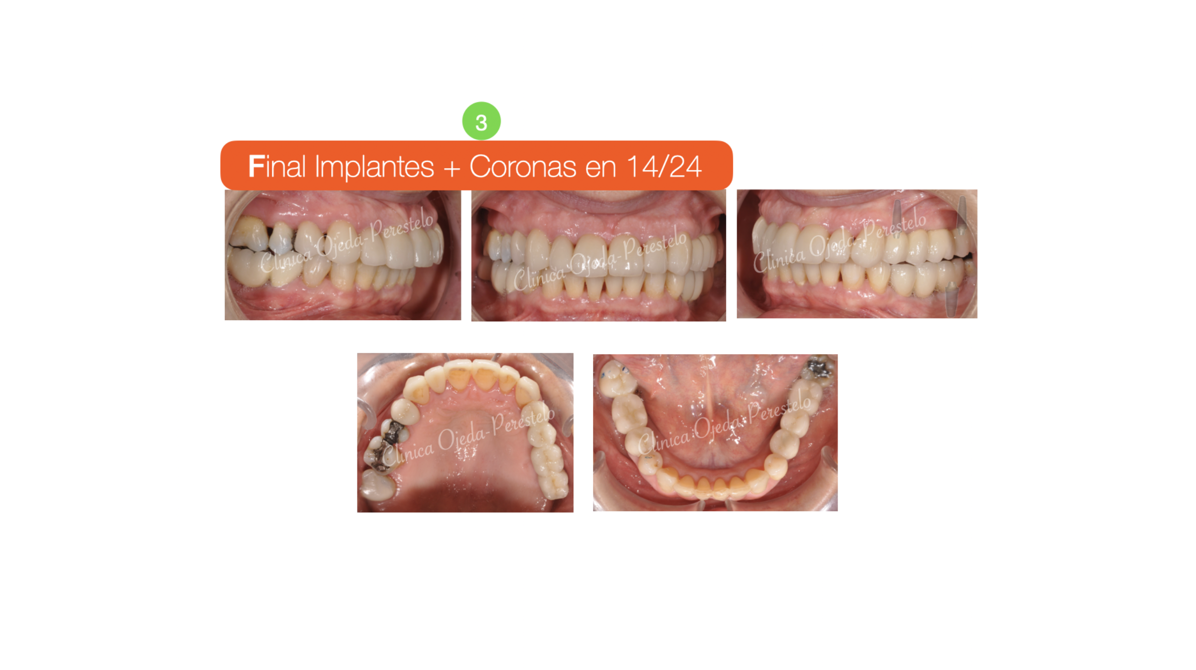 Queremos destacar la gran mejoría en la sonrisa en este caso de rehabilitación oral de alta complejidad donde 5 disciplinas odontológicas han estado sabiamente coordinadas. Creemos que solo de esta manera podemos conseguir este gran impacto estético-facial.