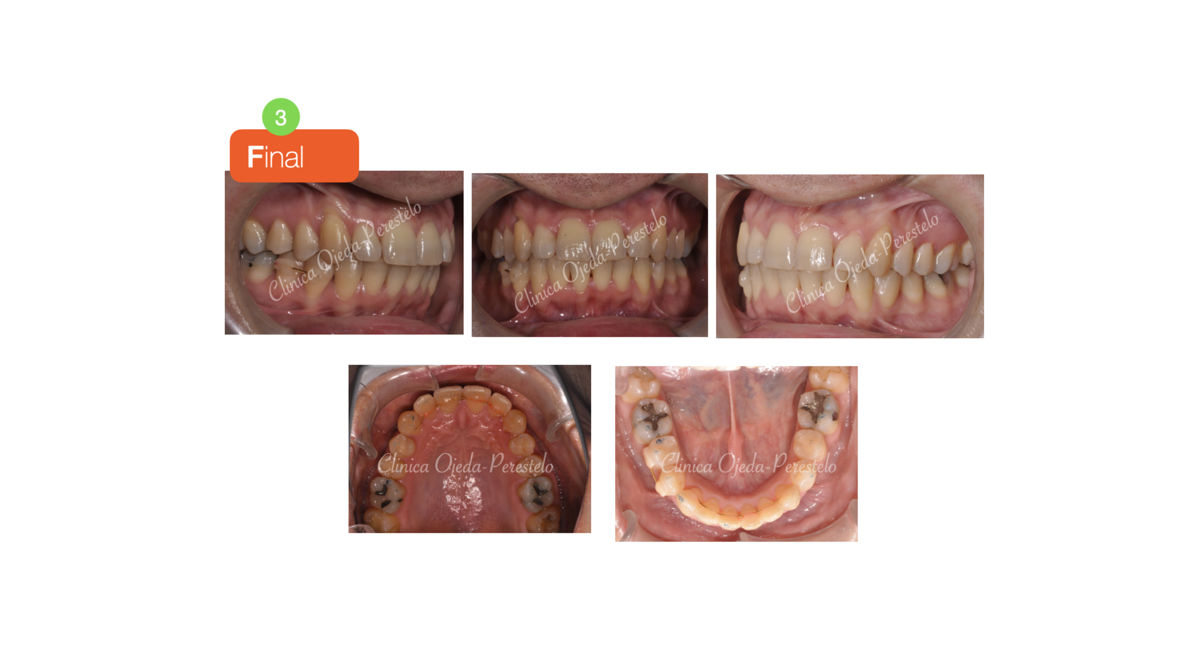 Queremos destacar la gran mejoría en la sonrisa y en el correcto engranaje dentario (articulación dentaria) observado en este paciente.
