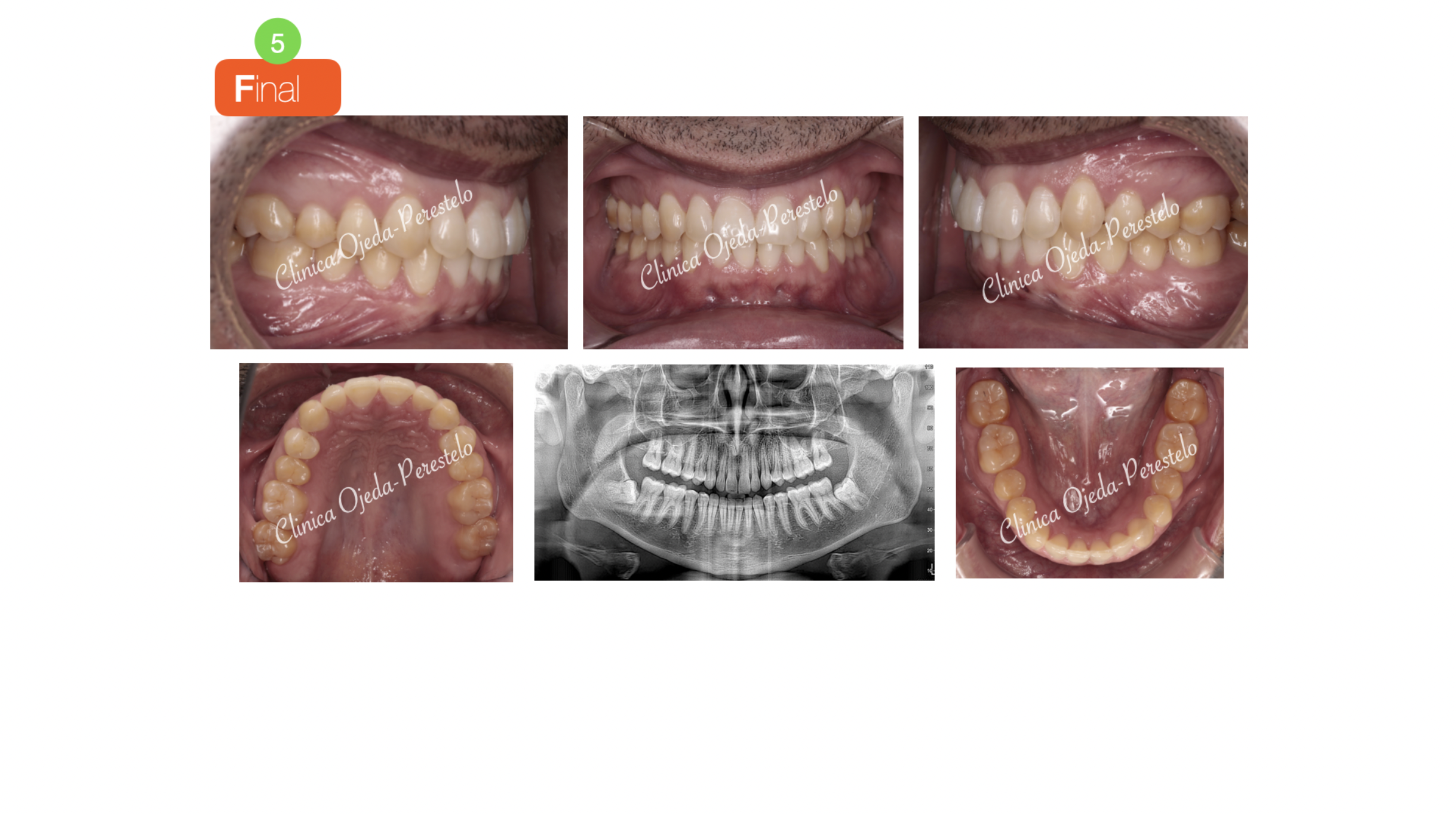 Finalmente destacar la mejora de la sonrisa con un correcto centrado de las lineas medias. Su articulación dentaria es correcta presentando una cinemática mandibular adecuada.