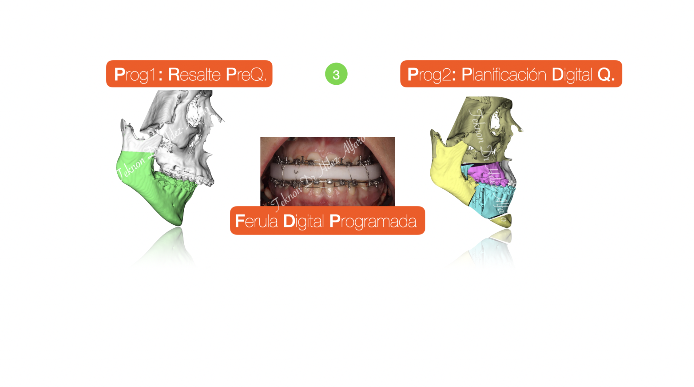 Una vez están las arcadas alineadas y ordenadas se planifica por el equipo del Dr Hdez-Alfaro un Lefort con Avance y giro Antihorario del Maxilar conjuntamente con Osteotomia Sagital de Rama de Avance Mandibular con Mentoplastia.
