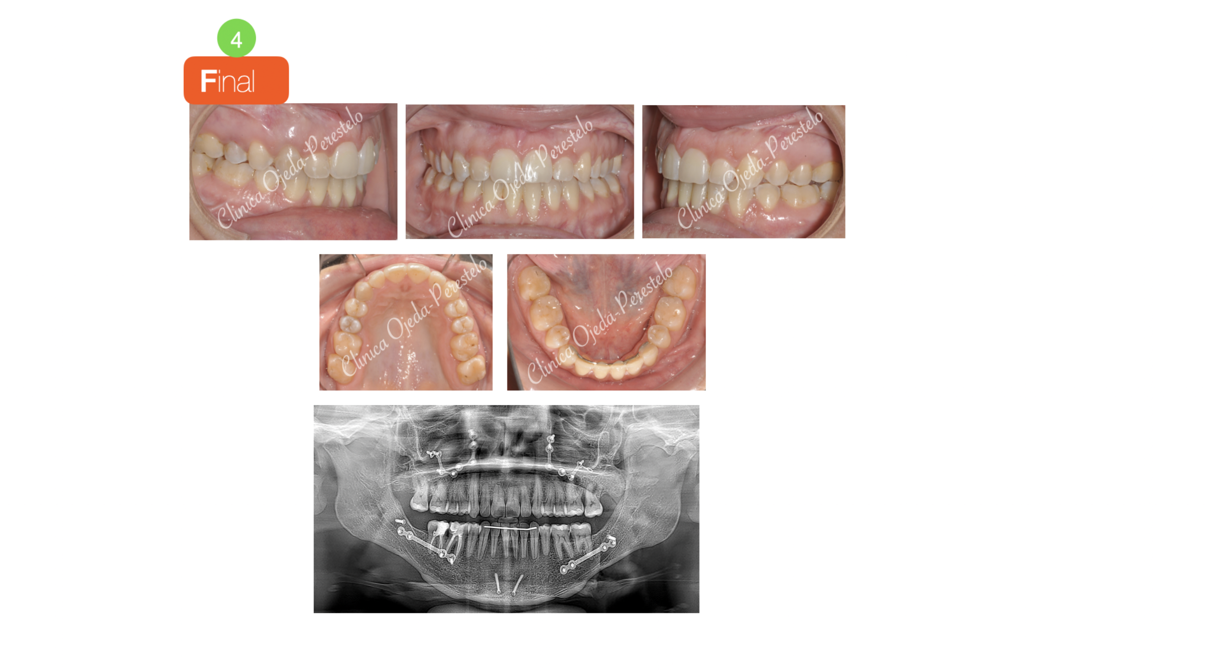 Se decide realizar, previo a la intervención, un centrado de los incisivos sobre sus bases óseas (descompensación dentaria) siendo necesario para ello la extracción de dos premolares inferiores (Sistema Damon).
