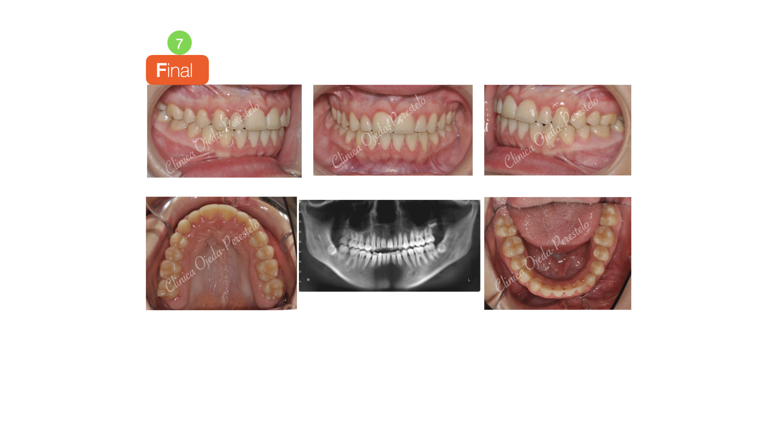 La paciente decidió continuar con una segunda fase de Ortodoncia fija a efectos de conseguir una correcta articulación dentaria y una adecuada estética de la sonrisa.