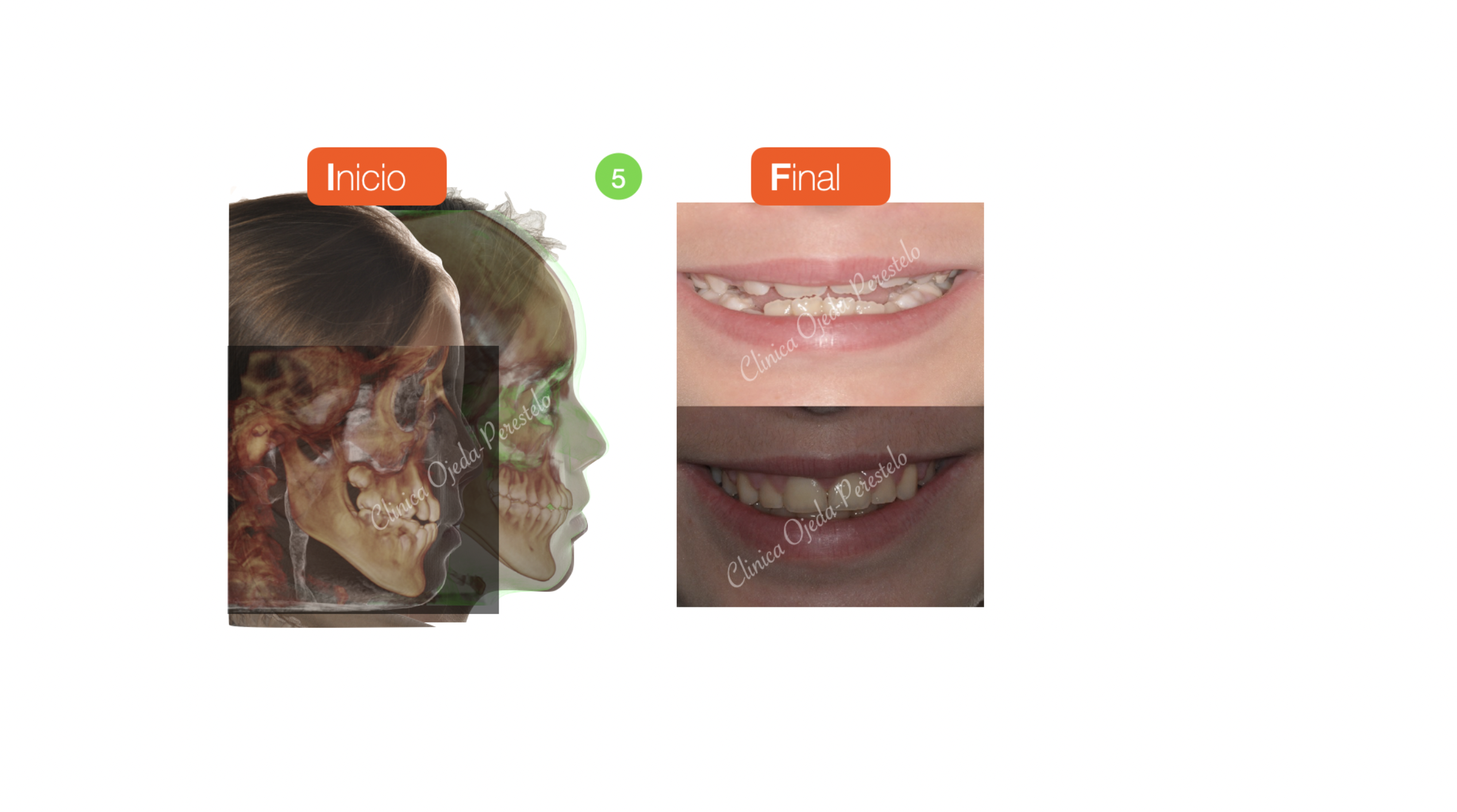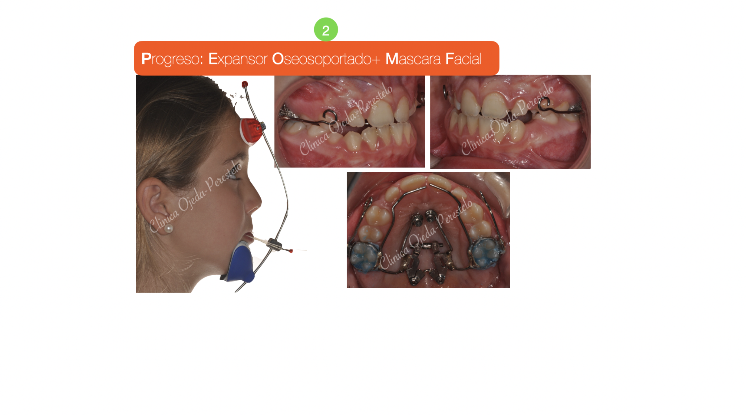 Se decidió combinar un Disyuntor Oseosoportado con una Máscara Facial ya que presentaba un déficit esquelético del Maxilar. El impacto facial alcanzado con esta estrategia ha sido relevante y equivalente al que observamos en una intervención quirúrgica del Maxilar (Cirugía ortognática Unimaxilar).