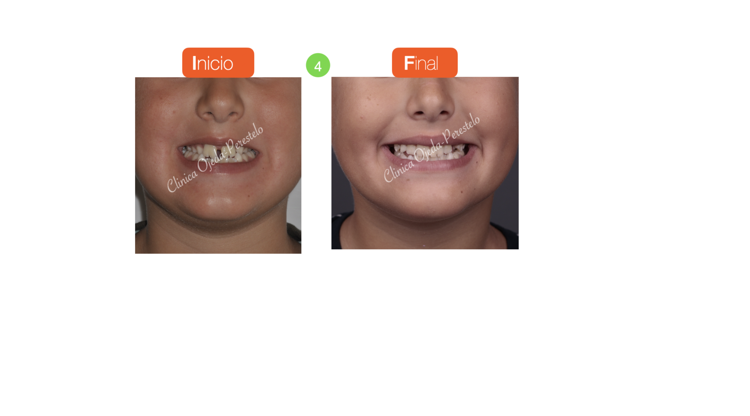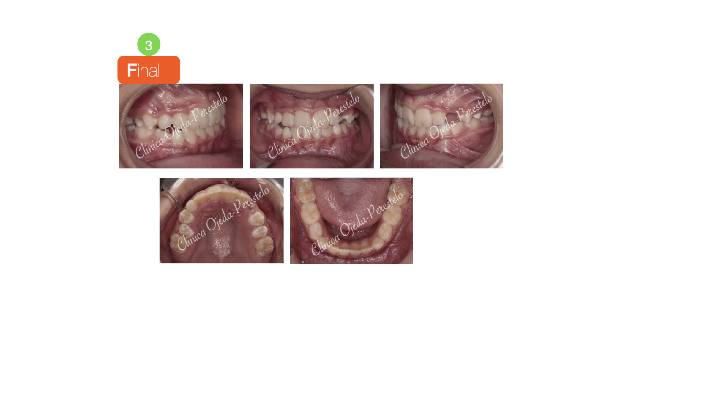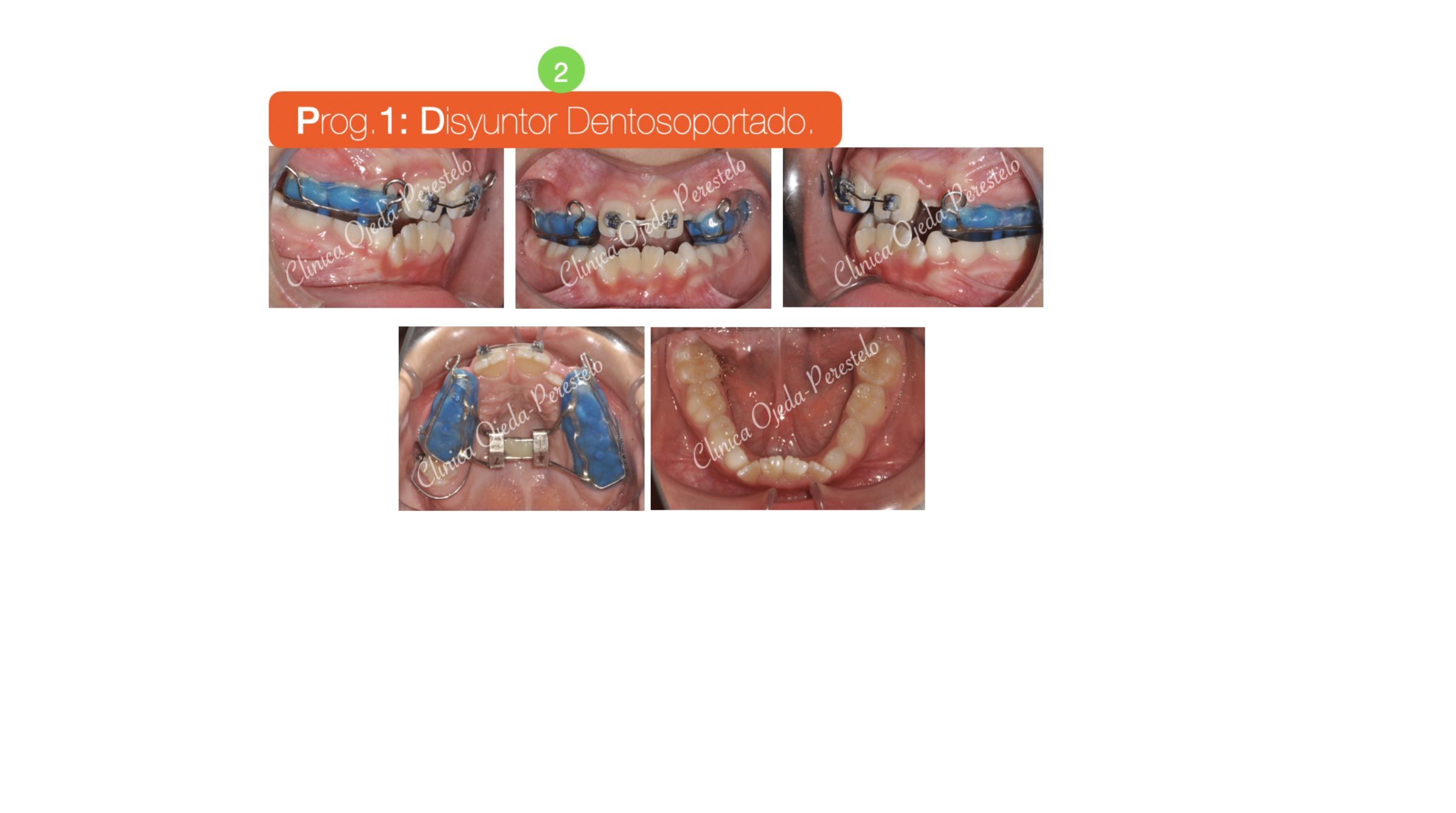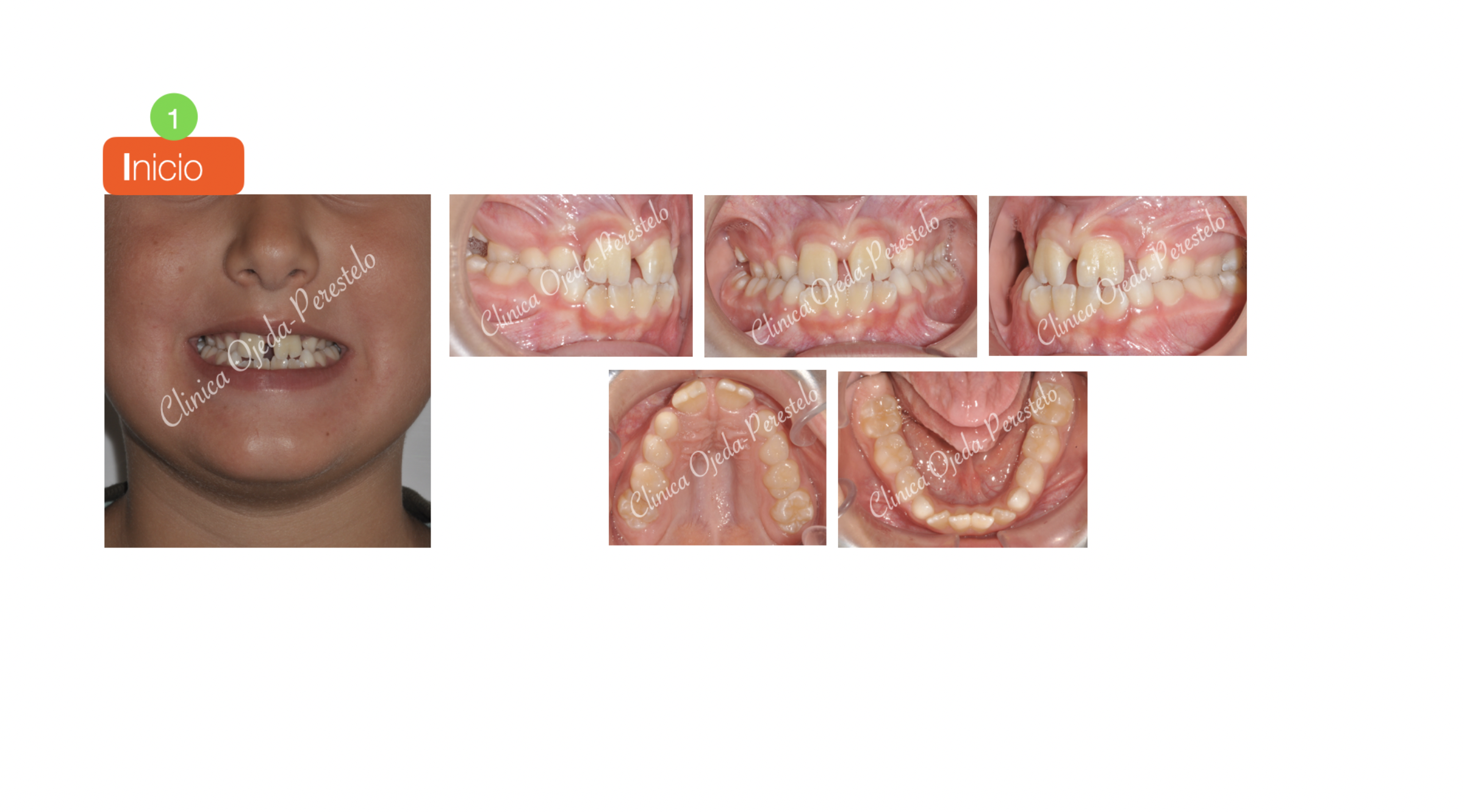 Presentamos a este niño respirador bucal y roncador con Mordida cruzada Bilateral. Decidimos colocarle un Disyuntor Dentosoportado con ganchos para Máscara Facial. Una vez terminada la fase Ortopédica (4 Meses ),comenzamos con la alineación y nivelación de los 4 incisivos con brackets superiores e inferiores (2x4 ). Quisiéramos destacar la mejoría del paciente en la función respiratoria, deglutoria y masticatoria. Sus ronquidos han desaparecido y se ha conseguido una gran amplitud en la sonrisa.