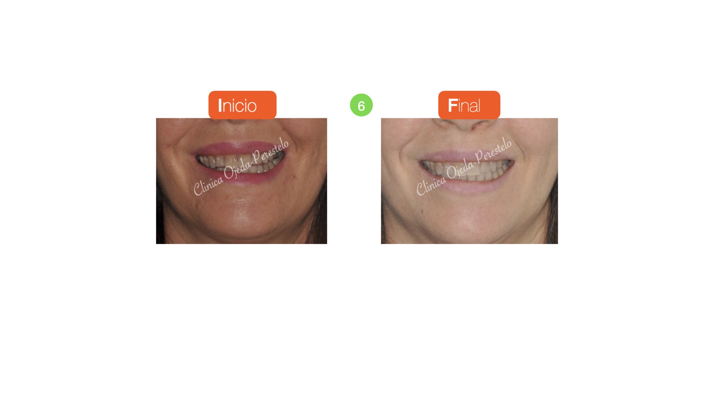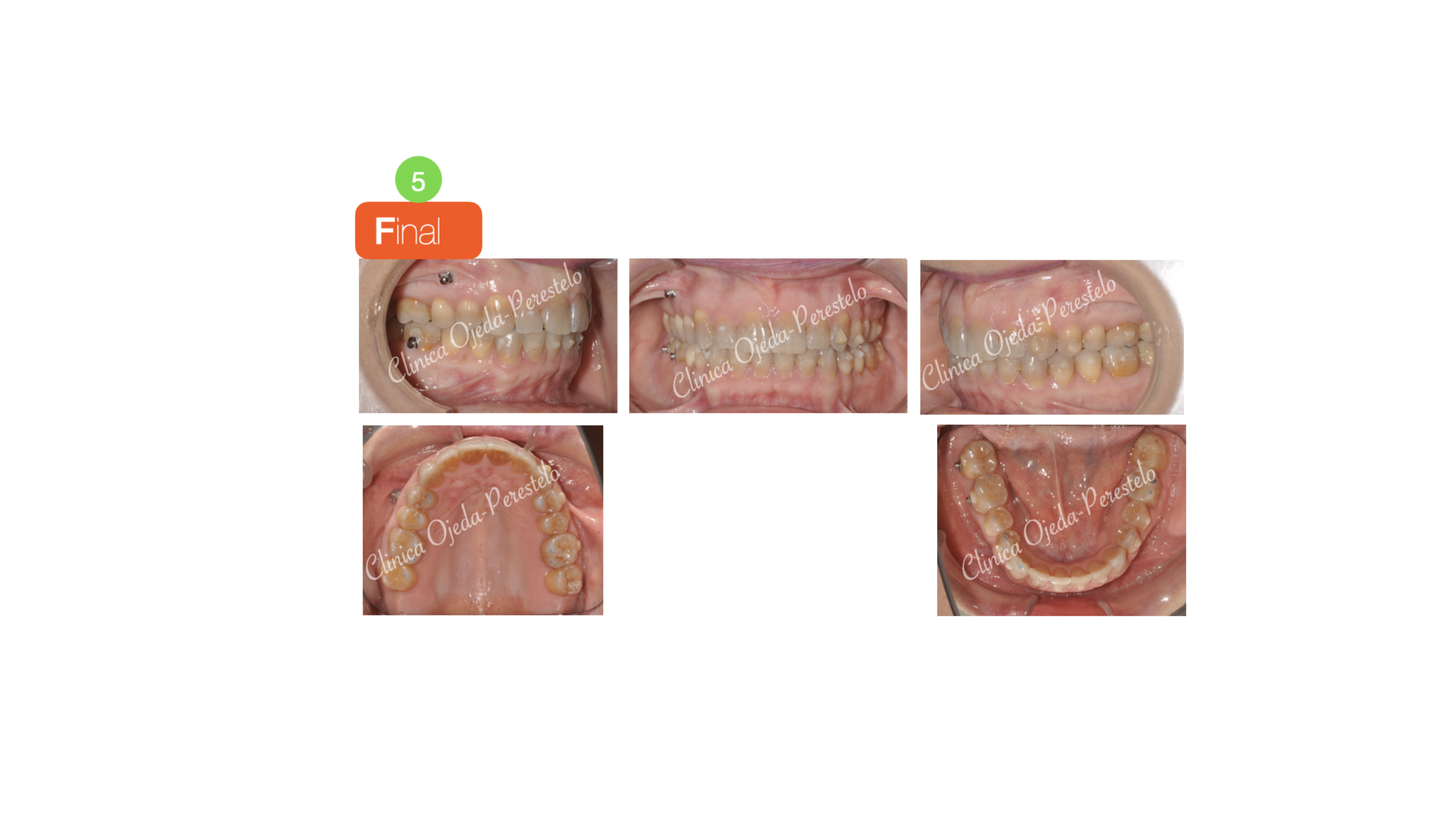 Finalmente quisiéramos destacar la mejora de la sonrisa, el centrado de las lineas medias, la correcta articulación dentaria además de la desaparición de toda la sintomatología dolorosa a nivel articular y muscular.