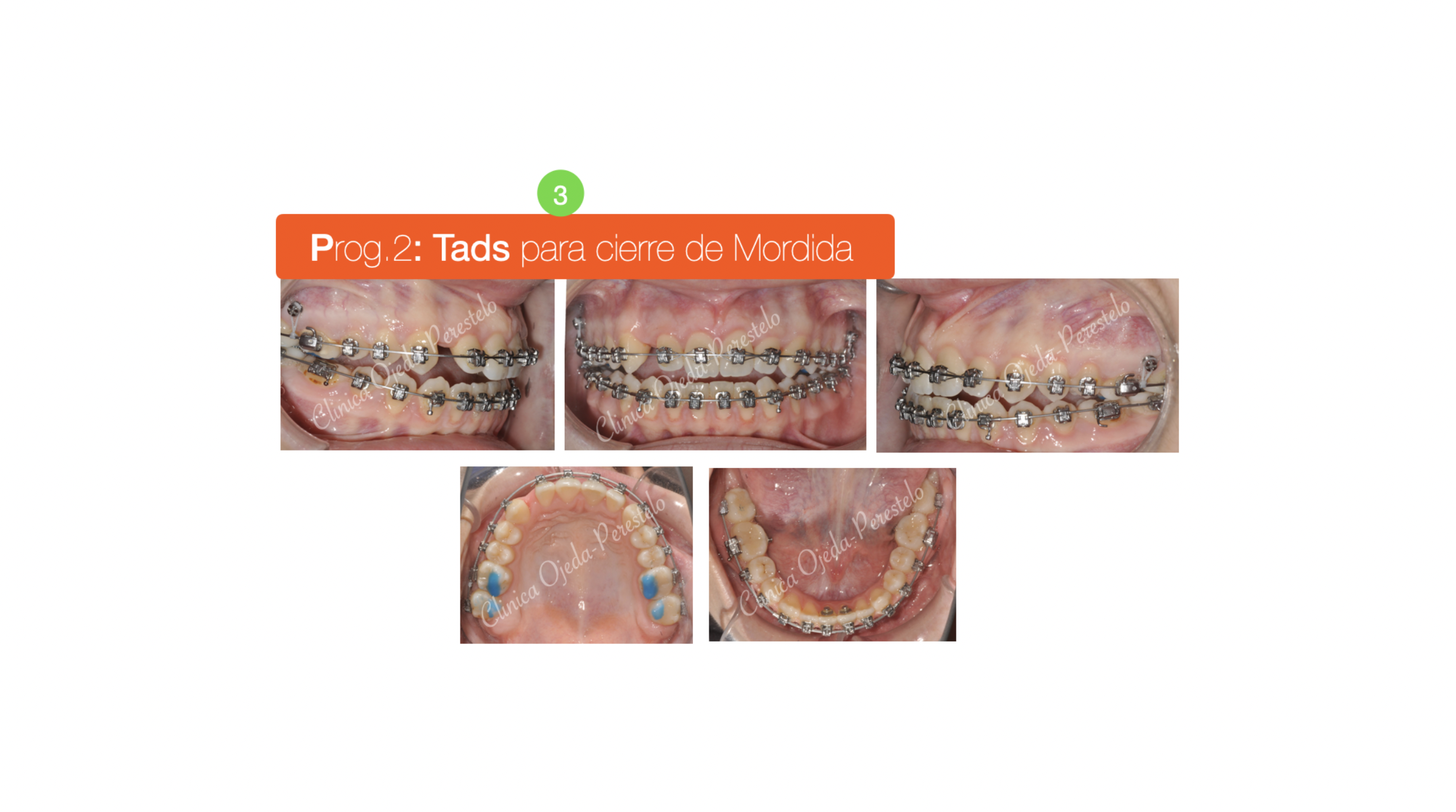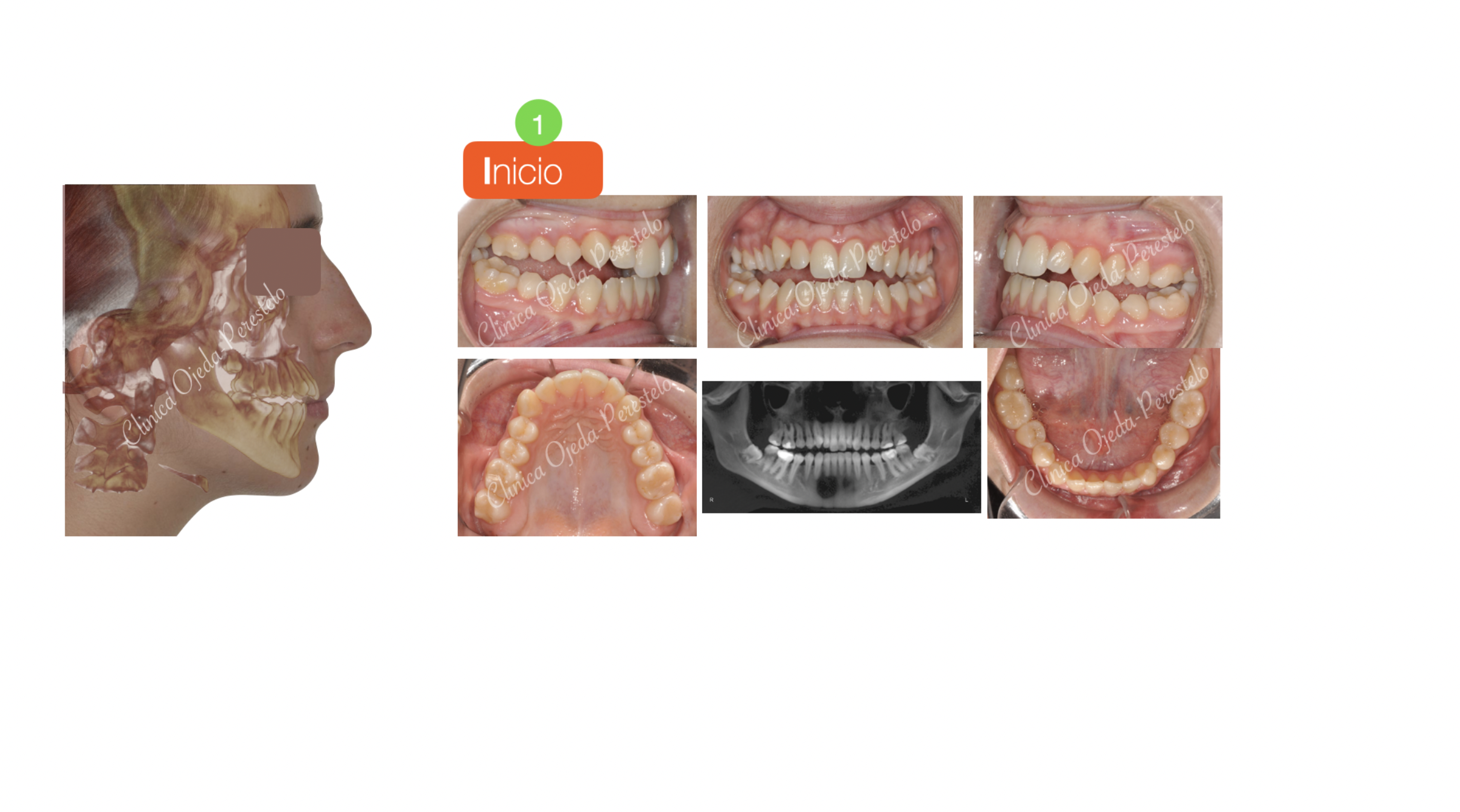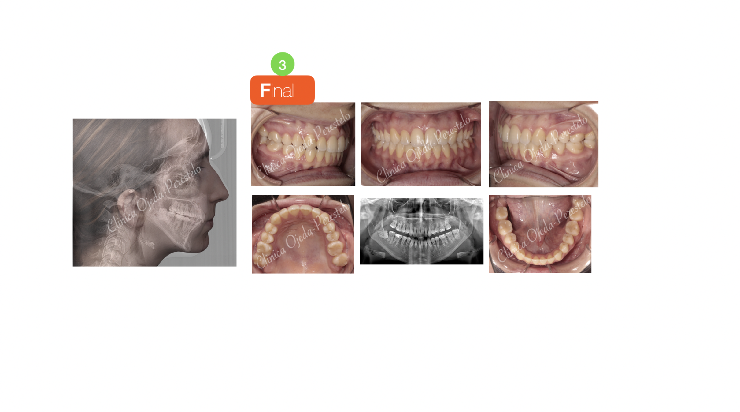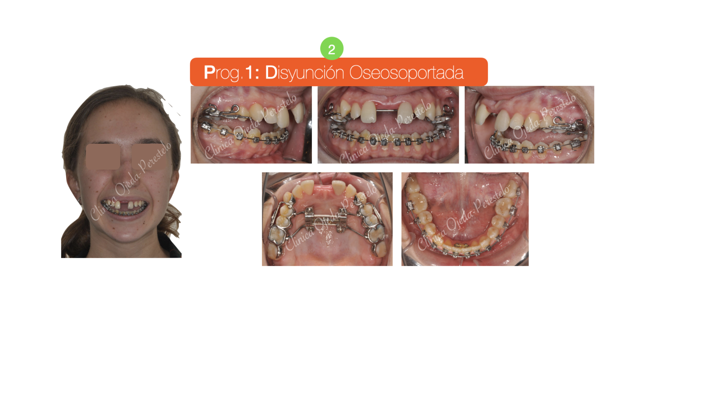 Paciente con problemas masticatorios tratada con Disyunción Oseosoportada (MARPE) y con Microtornillos (2) para el cierre de la Mordida Abierta. Se han alineado y nivelado ambas arcadas con brackets de autoligado pasivo (Sistema Damon) y elásticos intermaxilares.