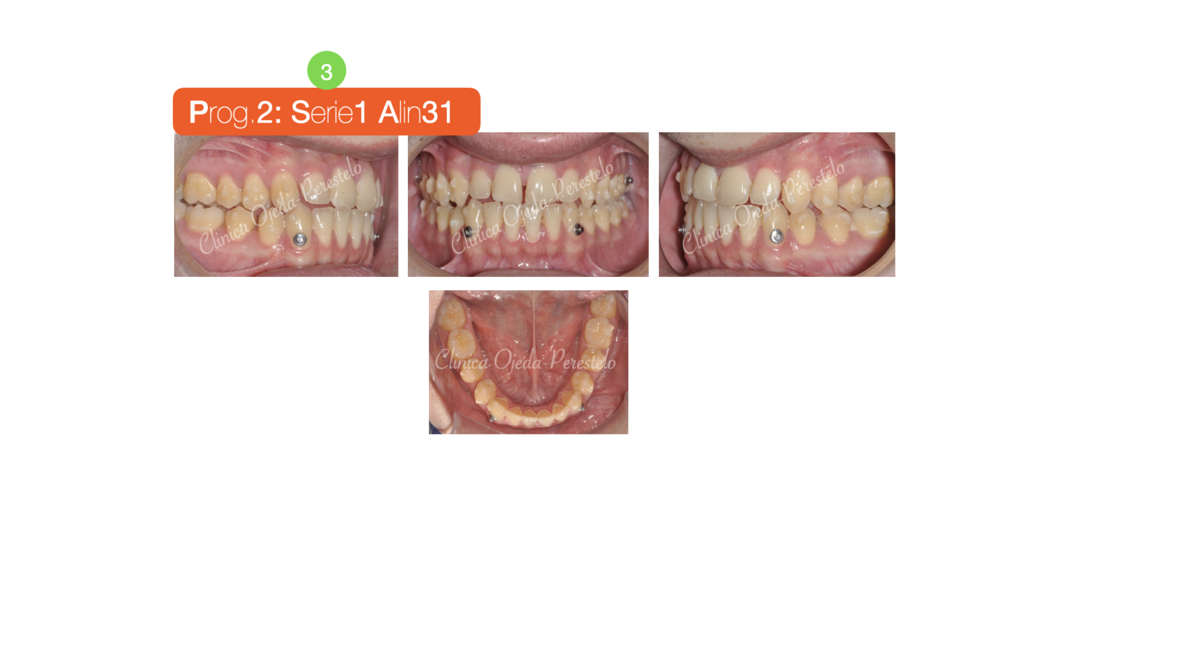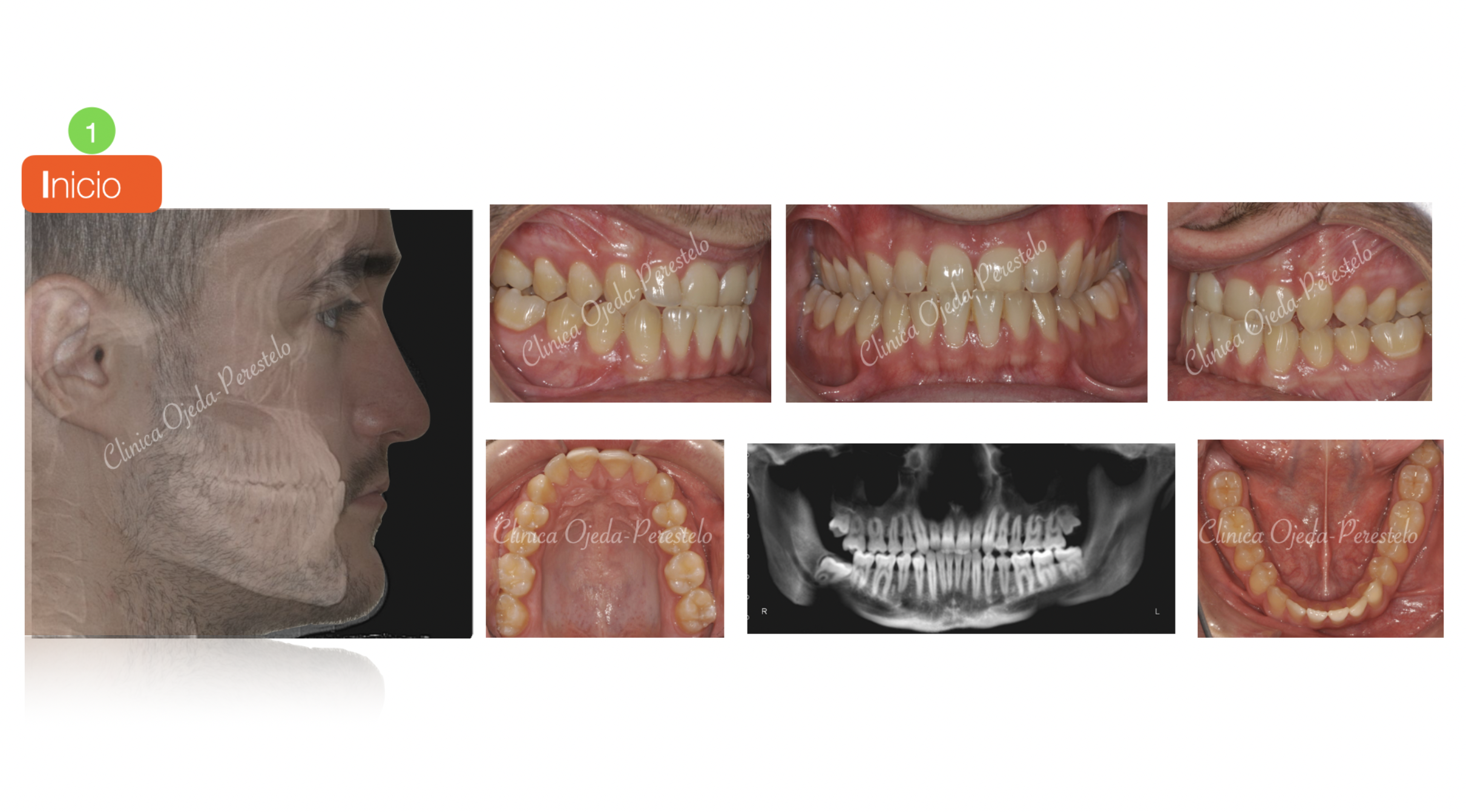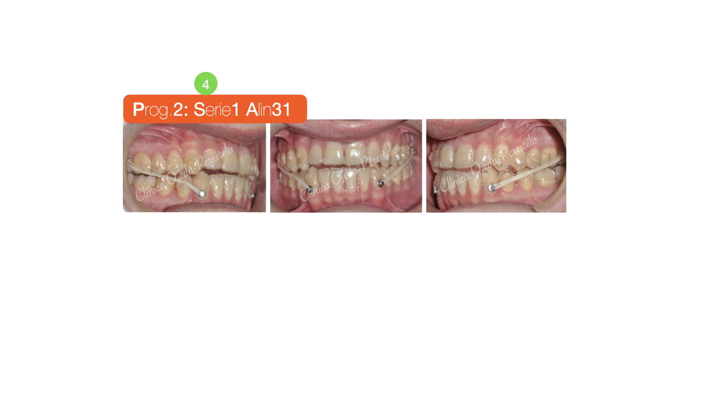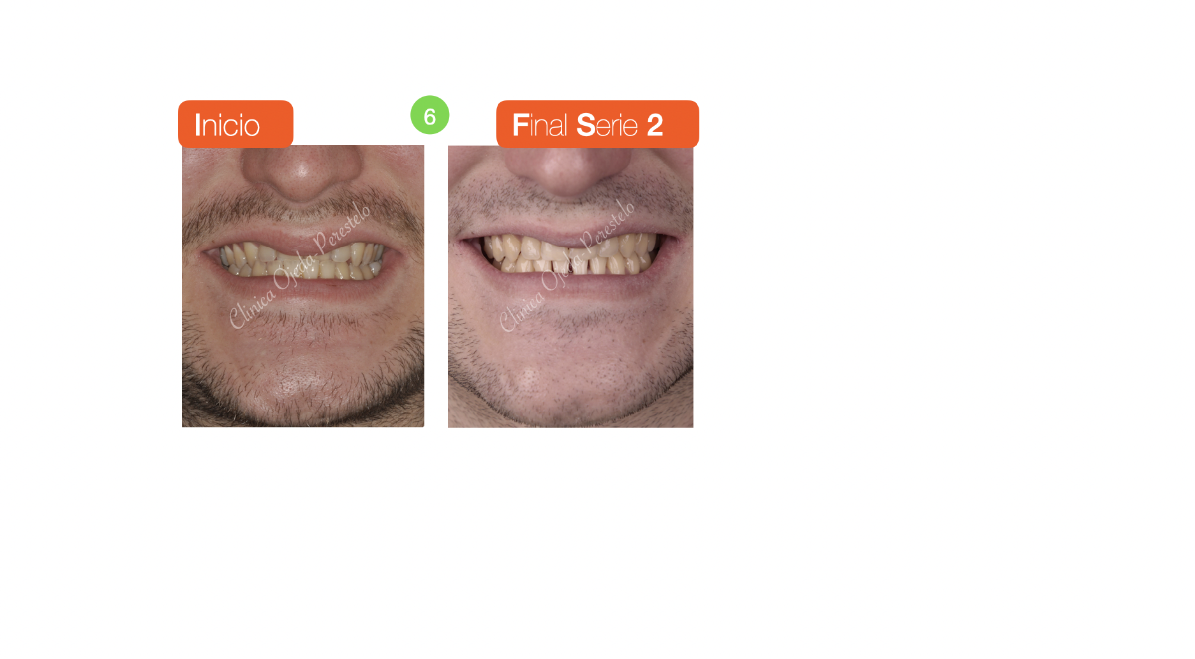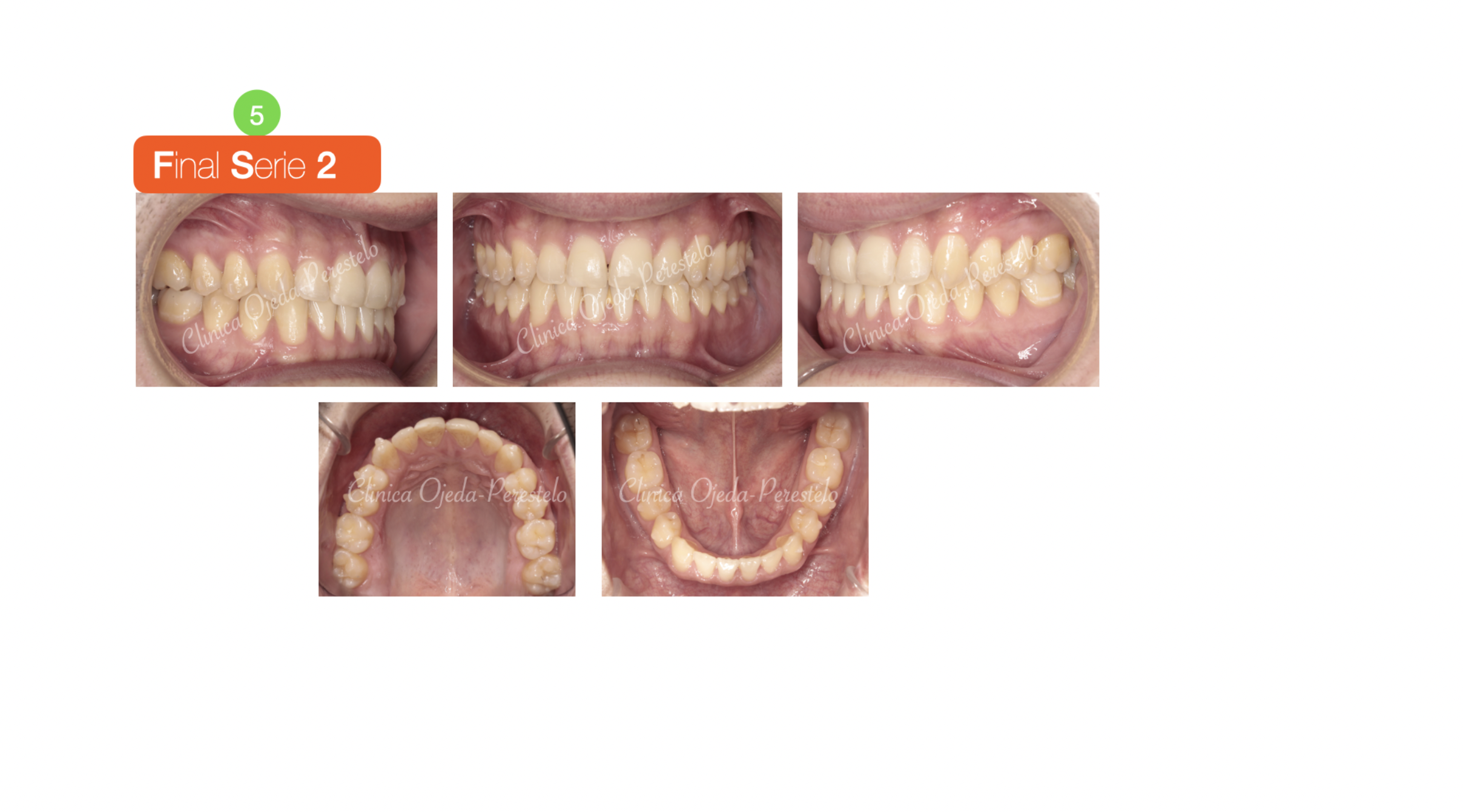 En la actualidad el paciente está pendiente de comenzar con una serie corta de alineadores con la idea de mejorar la posición del 13 y 21 así como con el ligero espaciamiento presente entre los incisivos inferiores.