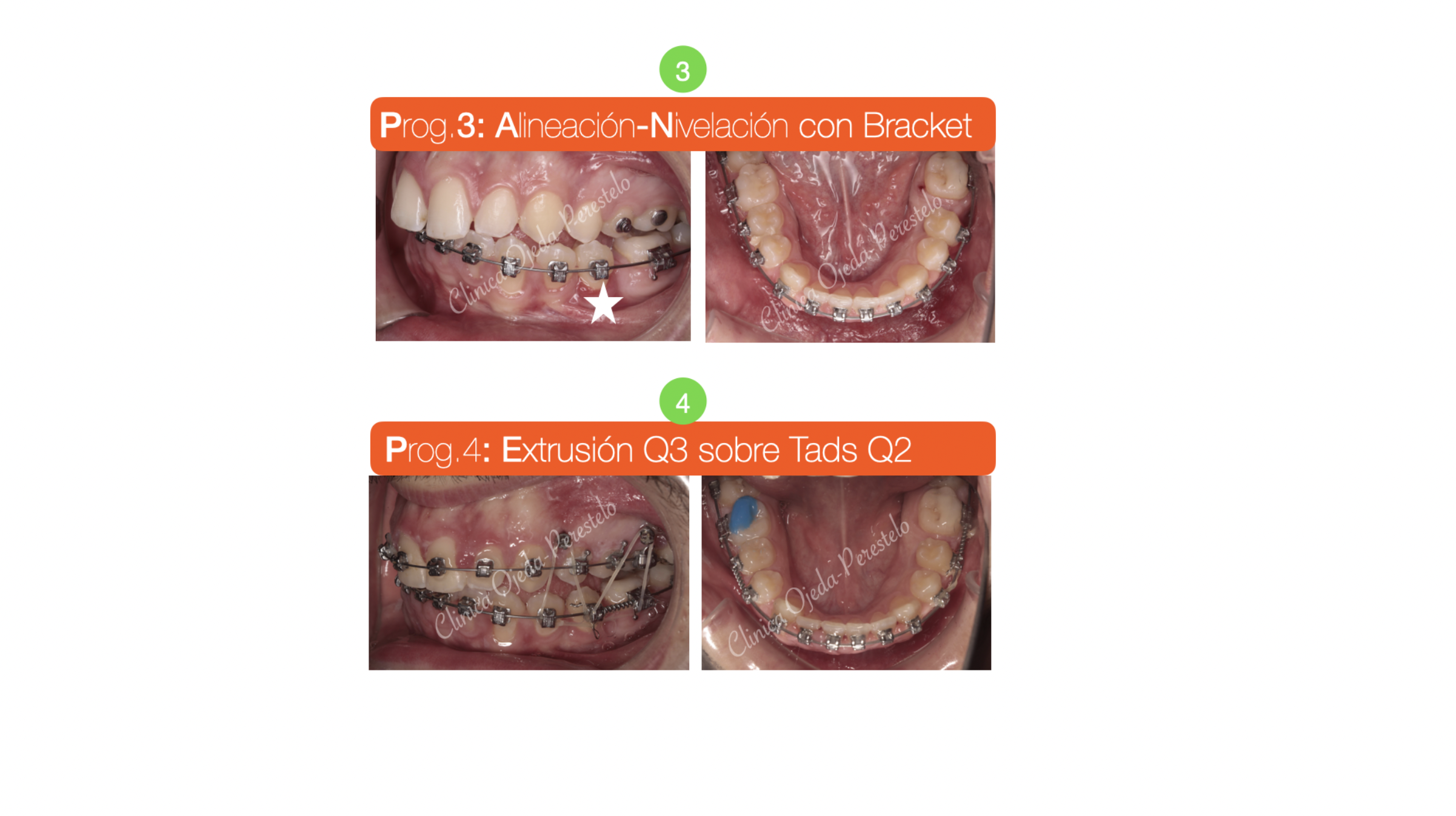Una vez que el premolar apareció en la arcada terminamos de alinearlo-nivelarlo con brackets ayudándonos de elásticos y 2MT colocados en la arcada antagonista.