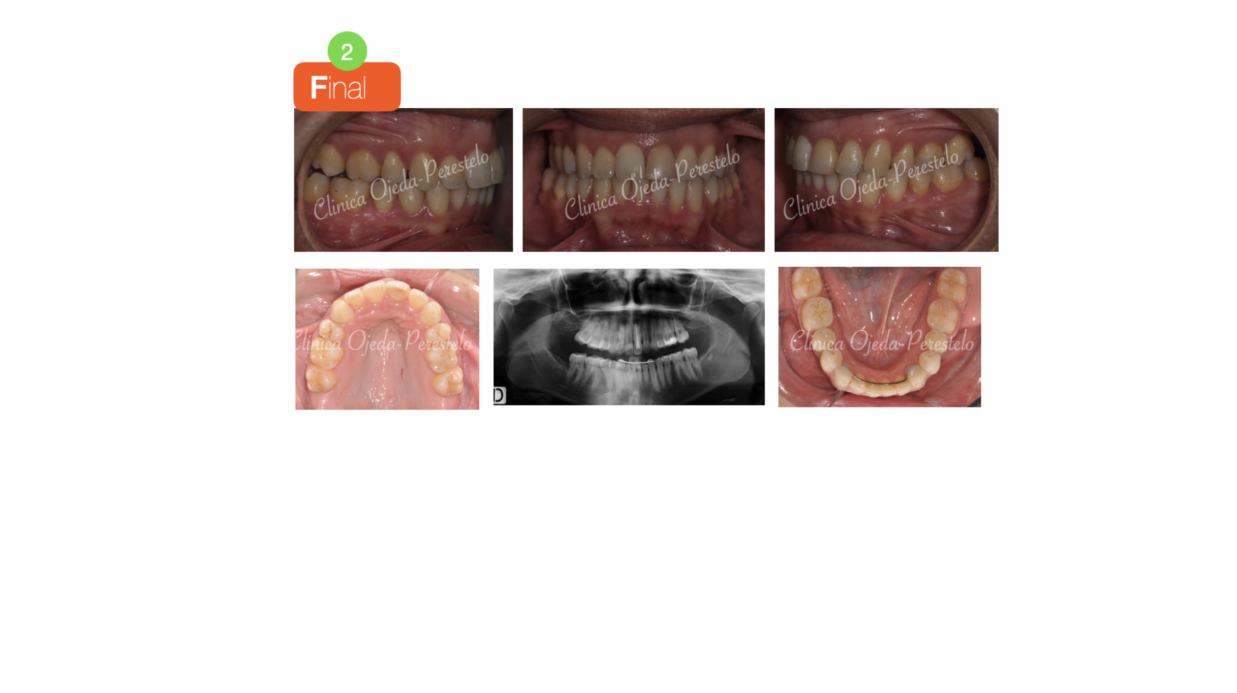 Paciente tratada con brackets de autoligado pasivo (Sistema Damon) donde hemos alineado, nivelado y expandido las arcadas. Hemos realizado las extracciones de los premolares superiores para disminuir el Resalte ya que la paciente no quería realizarse cirugía ortognática.